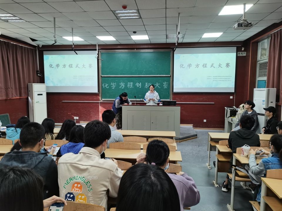 新闻中心消息 通讯员 张靖怡 崔漫11月15日上午,第十二周化学周系列活动之化学方程式大赛初赛在逸夫化学楼H201与H101成功举办。本次化学方程式大赛由共青团华中师范大学化学学院委员会主办,化学学院团委社团部承办,旨在激发学生们对于化学科学的兴趣,让大家发现化学的魅力、了解化学的含义、体会化学的意义,并且培养学生灵活运用化学知识的能力和团结协作能力。在本次方程式初赛中,共有60支队伍参与其中。本次大赛由社团部助理唐广梅与李捷主持。