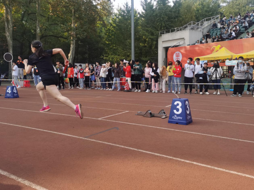枪声响,积蓄的能量在转瞬间迸发。飞驰而过,步履生风。摆臂、提跨、迈腿,一步步稳扎稳打,丝毫不敢松懈。交接棒处,队员们步调一致,协同向前,红白棒顺利交接,这一棒,承载着他们为化院争光的决心、见证了他们对自我的突破。终点就在前方,冲刺!冲刺!拼尽全力,放手一搏,是胜利的曙光!