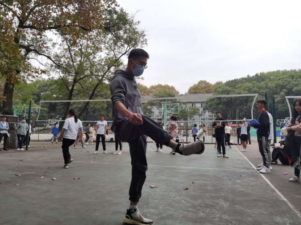 下午两点,团体毽球比赛在西区篮球场拉开帷幕。赛前,化院运动员们简单的进行了热身,熟悉了比赛场地也进入了比赛状态。随着裁判员发出口令,运动员依次上场,抛、看、抬、接、踢,熟练的动作里透露着他们平日辛苦的付出。虽然每个人仅有短短的一分钟,比赛过程却是非常激烈,每当毽球被踢飞,都会迅速捡起重新再踢,时间一分一秒的过去,运动员们不慌不忙、专心致志地踢着毽球。比赛中,大家都表现出了“铜锌向前”的化院精神。