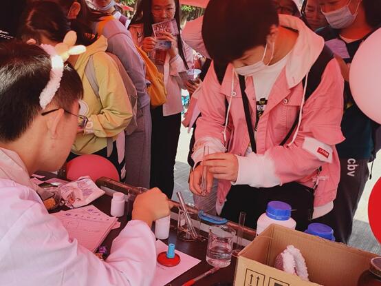 蔚蓝天空下的博雅广场,顶顶红棚下的化学实验,折射的是化学世界的五彩斑斓,激发的是莘莘学子的探索热情。对化学的兴趣,对知识的渴求,化成了“拾忆卡”上的枚枚印章。遨游化学海洋后收获的不止是精美礼品,更是愈发明晰的初心,更为赤诚的热爱。