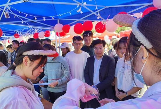 新闻中心消息 通讯员 王文政 严如悦 杨苒10月23日中午,华中师范大学科普嘉年华系列活动暨第十二届化学周系列活动化学嘉年华在博雅广场顺利举行。华中师范大学副校长彭双阶、校团委老师、各学院相关领导老师、化学学院党委副书记陈德均、化学学院团委书记马莹、化学学院团委副书记孙煜林莅临参观指导。本次活动旨在充分展现“求实创新,立德树人”的校训,繁荣校园文化,科普化学知识,激发化学兴趣,探索化学奥秘。此次活动由共青团华中师范大学委员会主办,共青团华中师范大学化学学院委员会承办。
