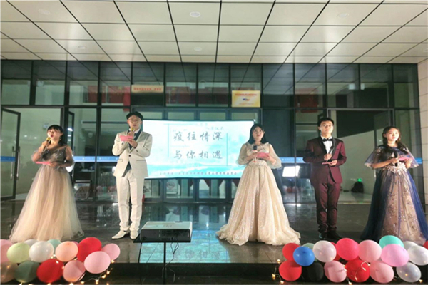 晚会第一部分“青春有你”,由杨小可、阮景琪、张心睿、马可四位新生带来悠扬婉转的歌曲及朗诵《遇见未来的你》。然后由交谊舞协会带来轻柔飘扬的《舞之谊》。紧接着, 2020级新生代表葛全超上台发言。他和同学们分享了自己在军训期间的心得体会,最后他代表20级全体新生向领导老师宣誓,大学四年一定会坚定理想信念,努力学习,全面发展。