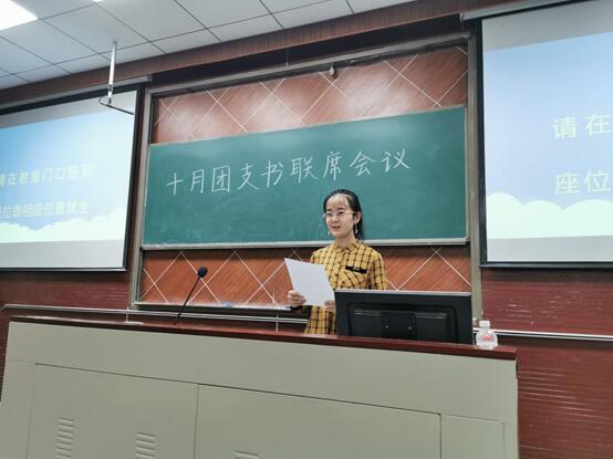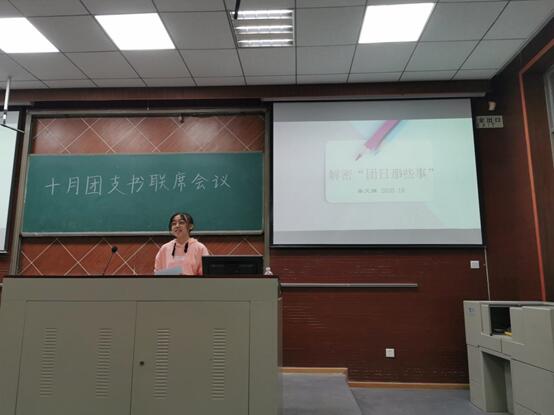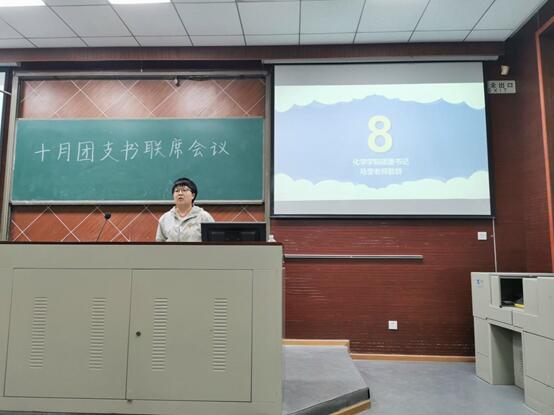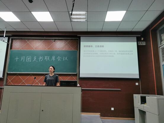新闻中心消息 记者 祝冰倩 周丹10月9日晚,化学学院十月团支书联席会议在逸夫化学楼101召开。本次会议旨在为2020级学生干部详细介绍化学学院“班团一体化”制度、团委组织部、团支书职责、支部考评条例以及上交材料要求,以便后续工作的顺利展开。与会嘉宾有化学学院团委书记马莹、化学学院学生团委副书记肖仁可、化学学院学生团委副书记付刘铮。2018、2019、2020级年级团干和团支书也参加了此次会议。会议由组织部负责人史越主持。