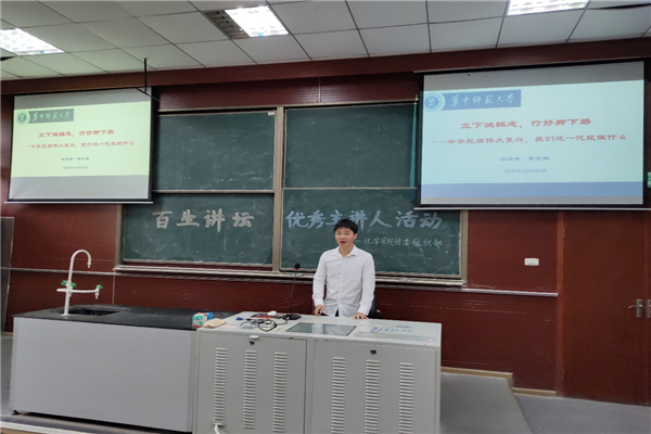第二位演讲的是黄立钢。他通过我国的科技进步以及温家宝总理对大学学子的寄语“仰望星空,脚踏实地”,对习总书记的“青年一代有理想、有担当,国家就有力量、民族就有希望”这句话进行了生动阐释。最后,用“无私无畏、无愧无悔”告诉我们如何把“有理想、有担当”落到中华民族伟大复兴之实处。