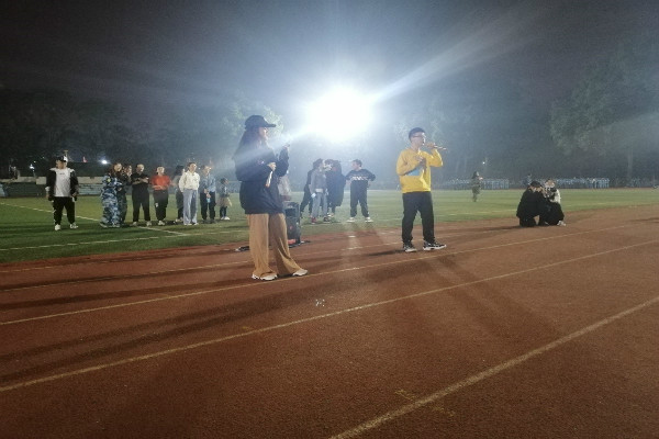 之后,主持人刘晓宣布用击鼓传花的方式结束节目。随着鼓点的敲动,矿泉水瓶在队伍中不断地被传递,拿到矿泉水瓶的几位“幸运儿”依次站在队伍的前方,用自己家乡的方言或者是极具家乡特色的方式介绍自己,加深了新生之间的了解,增强了活动的趣味性。