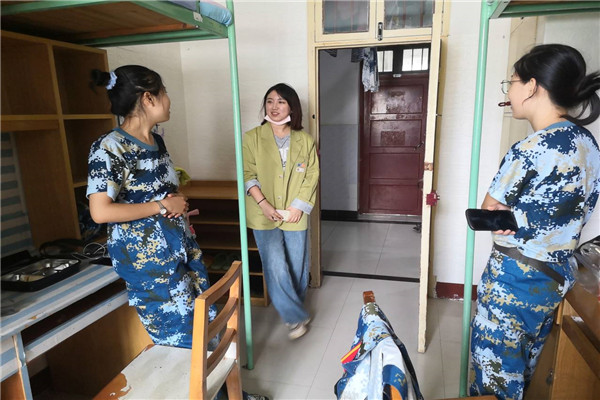 在军训内务整理的过程中,不仅有新生认真打扫寝室,志愿者们也在细致耐心地指导。在进行内务指导前,志愿者们全都接受了化学学院社区工作部的培训,详细了解了内务指导细则。在对新生指导的过程中,各位志愿者及时在内务指导群里反馈出现的各种问题,社工部相关负责人也给出了相应的解决方案。在所有新生、志愿者及社区工作部工作人员的努力下,大家共同为2020级新生营造了一个良好的寝室生活环境。