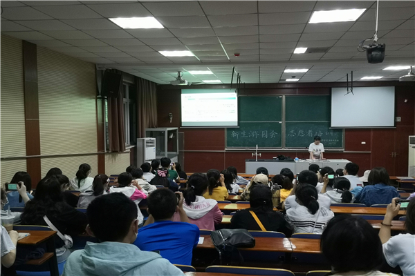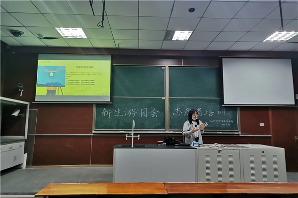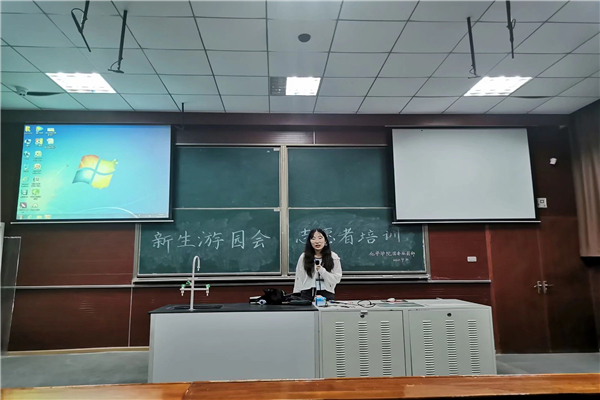 活动伊始,包奕丹宣布化学学院新生游园会志愿者培训活动开始,她介绍了两位主讲人,简要概括了此次培训的主要内容,然后请主讲人祝冰倩开始详细讲解。