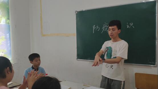 为增加青少年化学防疫知识,提高青少年自我防护意识,增强青少年心理健康建设,8月10日上午,谢端峰在湖北省京山市三阳镇新启航培训中心向孩子们展开了有关疫情期间化学防疫知识的宣讲。谢端峰从分析全球防疫情况开始,强调了具有良好防疫知识储备和形成良好的卫生习惯的必要性。紧接着,他用实物对口罩的挑选以及使用方法进行了介绍。介绍完口罩知识以后,谢端峰讲解了七步洗手法的相关知识,孩子们跟着他一起学着做,兴趣颇丰。