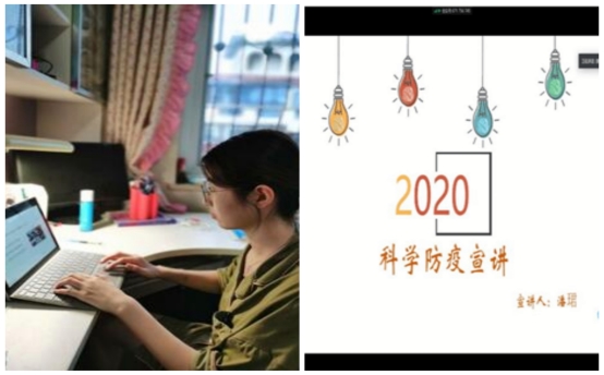 8月5日上午,潘珺利用腾讯会议平台,面向华中师范大学化学学院1802班同学进行了主题为“防疫中的化学知识”的宣讲。宣讲通过日常防护、杀菌消毒、内服药物、抗疫成果四个部分,给听众呈现了细致的日常防护知识及相关化学原理。宣讲过程中,潘珺以选择题问答形式与听众进行互动,气氛活跃。宣讲结束后,听众纷纷表示,这次宣讲让他们增长了知识、了解了更多的生活常识。