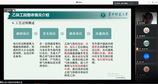 新闻中心消息 通讯员 周钧岍8月11日,华中师范大学化学学院2017级应用化学专业实习汇报会在腾讯会议平台顺利举行。出席本次汇报会的嘉宾有化学学院党委副书记徐芬、专业教师熊焰、2017级辅导员安晓蕾。会议由化学学院专业教师李盛彪、陈存华主持,按小组进行汇报展示和交流讨论,旨在考察同学们对于化工生产工艺的学习情况,并通过小组合作汇报的方式检验实习成果。