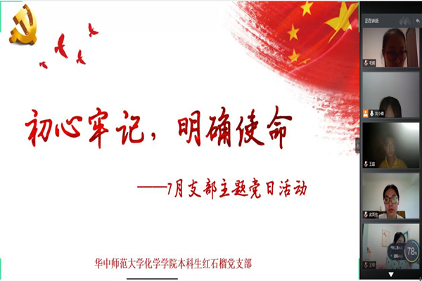 新闻中心消息 记者 毛莉8月10日晚,化学学院本科生红石榴党支部在腾讯会议平台开展了7月主题党日活动。旨在深入学习《通知》精神,明确防汛救灾与人民生命财产安全的密切联系;全面解读《条例》的相关内容并积极贯彻落实,加强基层党组织建设。同时为各位党员搭建互相交流学习的平台,增添支部活力。本次会议由2017级中共党员沈小倩主持,化学学院本科生红石榴党支部书记武双欣、支部8名党员同志及30名入党积极分子参加了此次会议。