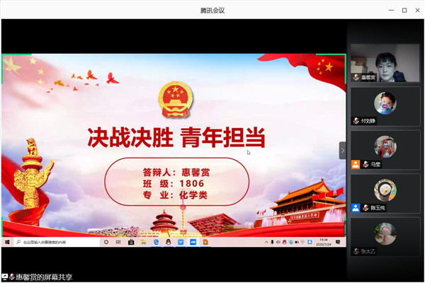 接着进行答辩的是惠馨赏,她作为化学学院学业辅导中心负责人,将自身学习和学业辅导有机结合、相互促进,使两方面都取得了良好成效。而周巧雨结合社团经历,并巧妙地运用《诗经》里“如切如磋,如琢如磨”概括了自己入党的心路历程。之后,刘银从思想、行动、个人价值三个方面说明了自己的入党动机,阐述了端正思想服务人民、兼顾家国利益和个人利益的想法。