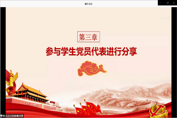 接着,武双欣从学生党支部与教工党支部、低年级学生寝室结对子进行讲述。学生党支部与物理化学研究所党支部联合举行的“重温革命历史、坚定理想信念”特色党日活动、“我和我的祖国”特色党日活动等,将教工党支部绿色创新、绿色化学生态文明的理念传达给了学生党支部。另外,党支部通过党员与低年级学生寝室的对接,实现与低年级学生的交流沟通,从学习经验、学生工作和职业规划等方面来引导新生尽快适应大学生活。