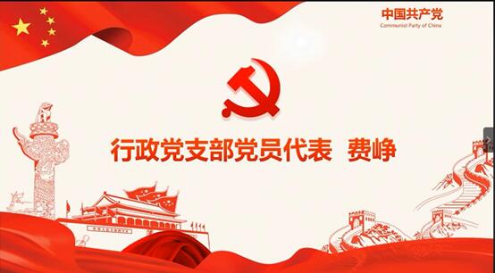 会议第六项,由化学学院党员师生、入党积极分子代表分享自己在疫情期间的战疫故事。首先进行分享的是行政党支部代表费峥。在疫情期间,她和家人分居多地,而自己又处于疫情的重灾区,楼栋与小区被分隔开来。费峥和楼栋的其他三名党员一起组成了一个帮扶小分队,挨家挨户地为邻居采购食物、登记信息。楼栋的居民多是老人,不会使用微信等软件,他们就耐心地教。疫情没有阻断邻里间的联系,反而让他们的心离得更近了。