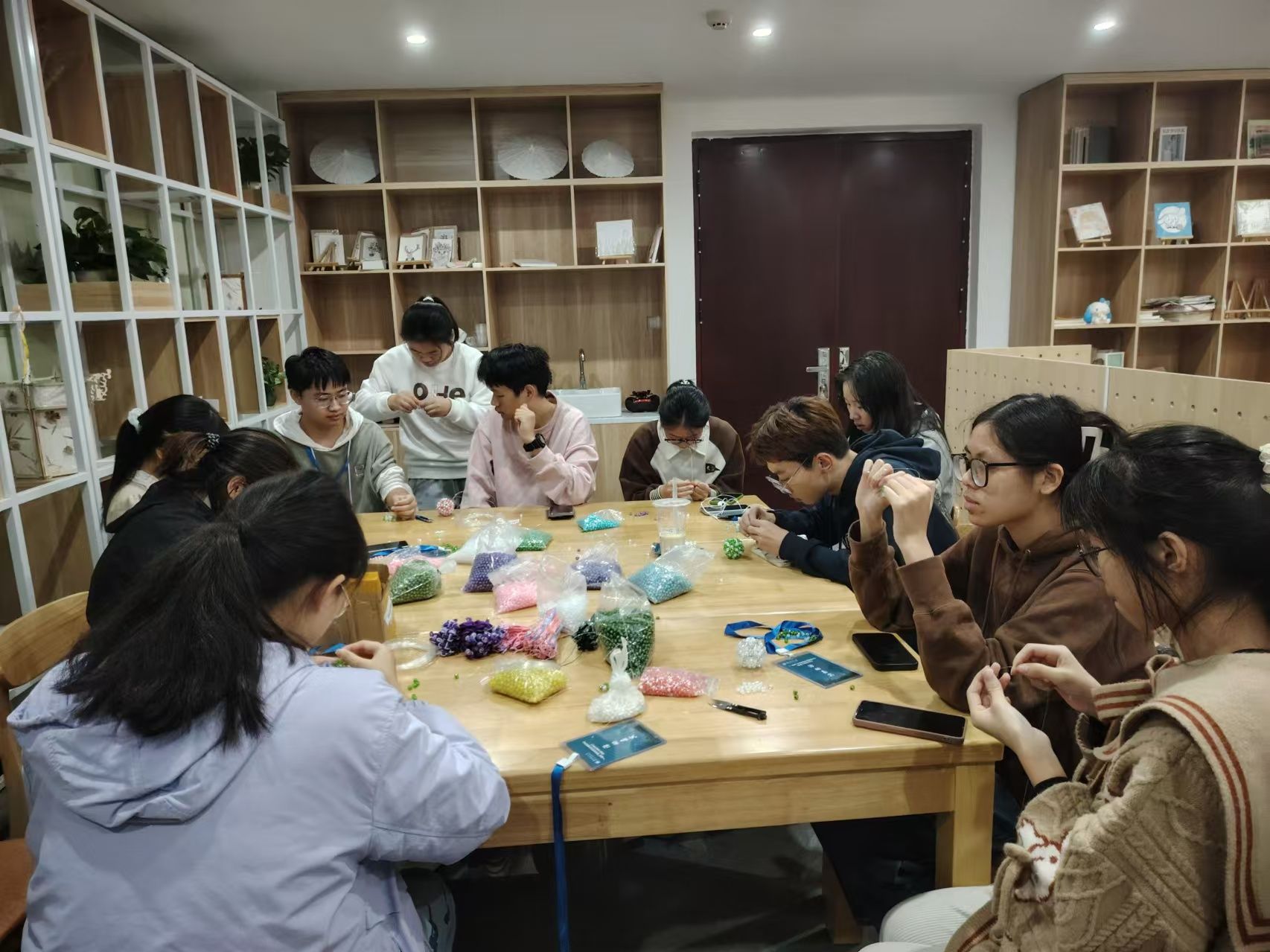 为提升学生的美育涵养、推动心理健康与艺术疗愈的有效结合,帮助学生疏解心理和生活上的压力,以饱满阳光的心情迎接下半学期的学习和生活,我们举办了“妙笔生花”手工减压系列活动第五期,于11月9日晚上在一站式学生社区(东十八)心流空间开展“串珠成球,心情无忧”的中国结圆球制作活动,现场反响热烈!此次活动由华中师范大学党委学工部、华中师范大学心理健康教育中心主办,化学学院红石榴壹心灵驿站、物理科学与技术学院栀子花工作室、倚丹青结珠协会承办。