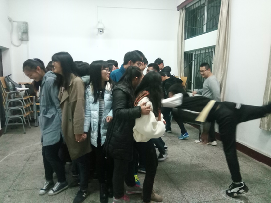 活动在一个名叫“渔夫和鱼塘”的游戏中开始。全班同学被围困在一个鱼塘中作为小鱼,四周有渔夫前来抓捕,最后只剩几只小鱼的时候,游戏开始陷入了僵局,但很快在同学们的齐心协力下,终于将最后的小鱼全部抓获。