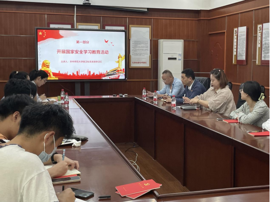 (通讯员 郭雅婧)为进一步开展全民国家安全教育日系列活动,强化党员的国家安全意识和理论知识系统化程度,化学学院本科生红石榴党支部联合保卫处党支部于4月24日中午组织开展“中部崛起谋发展,安全教育筑屏障”主题党日活动。保卫处副处长柳亚涛,保卫处党支部刘亚瑾、李汉红,化学学院本科生红石榴党支部书记武双欣,指导老师李佳蔚以及全体党员参与会议。支部成员林姝婧、刘柯兰担任活动主持人。