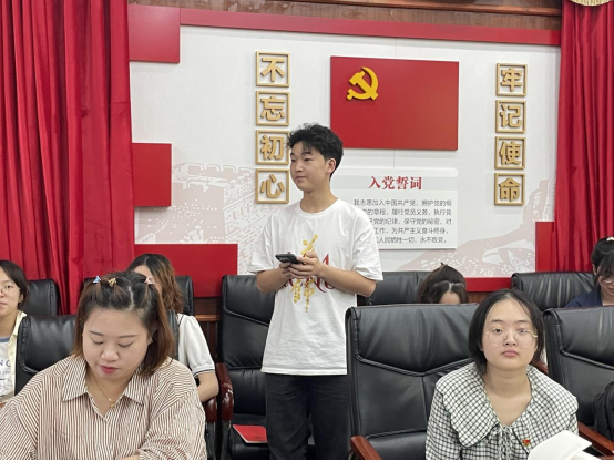 随后,林姝婧带领大家一起学习了习近平总书记在新时代推动中部地区崛起座谈会上的重要讲话精神,通过领学,党员们了解到推动中部地区崛起的五大关键做法。田有茂结合自己的家乡建设和个人专业分享自己的心得,他表示作为湘西孩子,切身感受到党和国家发展中部地区的重要成就,自己也希望能够回到家乡继续为中部地区崛起献一份力。