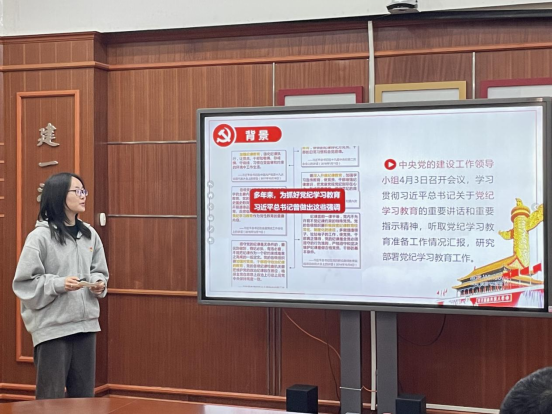 刘柯兰领学中央党的建设工作领导小组会会议精神。此次会议强调要进一步加强对党的纪律建设的重要性和忽视党纪、违反党纪问题危害性的认识;要抓住学习重点,在学习贯彻《中国共产党纪律处分条例》上下功夫见成效。与会人员也认真学习了《中国共产党纪律处分条例》部分内容。