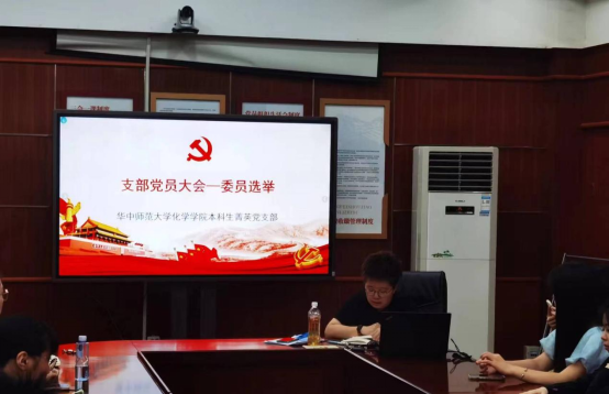 通讯员 朱可欣6月13日中午,华中师范大学化学学院本科生菁英党支部六月主题党日活动暨支部委员换届选举大会在逸夫化学楼502顺利开展。化学学院本科生菁英党支部书记马莹、指导老师安晓蕾以及本科生菁英党支部学生党员同志与会。本次会议由闫雯慧同志主持。