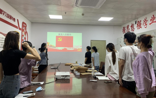 会议伊始,由马莹同志领誓,全体与会党员重温了入党誓词。之后,覃雪娇同志带领全体同志一同围绕习近平总书记给北京师范大学“优师计划”师范生的回信精神、《习近平谈治国理政》第四卷、全面落实学校下半年重点工作三大板块展开了学习。第一板块的重要精神着力强调了推进新时代教育事业高质量向前发展,教师队伍建设、“优师计划” 的实施、“国培计划”的改革,鼓励青年秉持珍惜时光,刻苦学习砥砺品格,增长传道授业解惑本领,毕业后到祖国和人民最需要的地方去,努力成为党和人民满意的“四有”好老师,为培养德智体美劳全面发展的社会主义建设者和接班人贡献力量。第二板块中《习近平谈治国理政》第四卷则从“守正创新,丰富发展”、“坚持思想,推进复兴”、“整体性、系统性、学理性”这三方面展开学习。覃雪娇同志结合自身感悟、热点时事以及支部特点,在领学过程中通过设问引发支部成员的思考感知,并对重要内容进行适当补充讲解,重点内容也有特殊标记强调,全体党员学习认真,注意力集中。