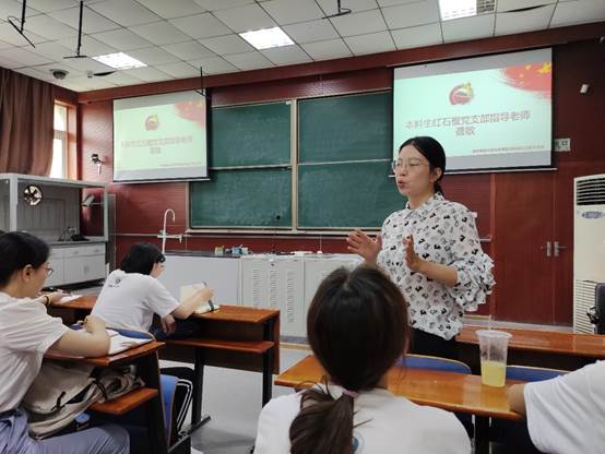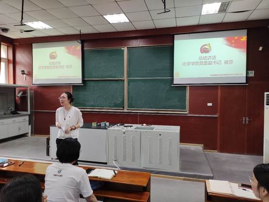 在领学结束后,徐芬书记进行总结并表达了自己的党史学习心得。她表示党支部充分发挥了双引领的作用,不仅要发挥引领学生思想的作用,还要促进学生的实际的成长发展。