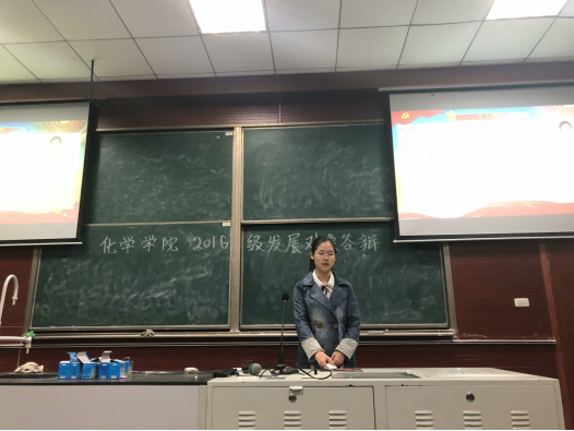 (新闻中心消息 通讯员 张芬芳)2019年10月25日晚上19时,化学学院2016级发展对象答辩会在化学楼201教室顺利举行。参加本次答辩会的有16级兼职辅导员罗雅怡、18位参加答辩的入党积极分子以及由红石榴党支部、菁英党支部成员和每班5位同学组成的评委团。