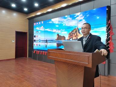 接着,由吴安心作题为“交流是镜,才能自省自明”的讲座序言。首先,他表达了对文学家晓苏的敬意,并从人物经历、主要作品、获奖记录三个方面介绍了晓苏。然后,吴安心以自己创作诗文的经历为例,讲述了文学对他这个理科男求学之路、学问之志、担当之责、人生之向的影响。最后,他再次诠释了文学的意义——点燃人们已熄灭的灵魂之火,开启人们向往的幸福人生。
