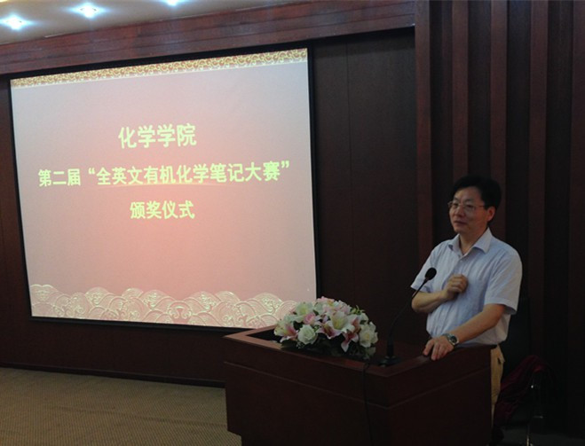新闻中心消息 记者严冬梅6月10日下午,化学学院第二届“全英文有机化学笔记大赛”颁奖仪式在化学楼五楼报告厅举行。化学学院副院长张爱东、刘盛华以及参会学生代表参加了本次活动。