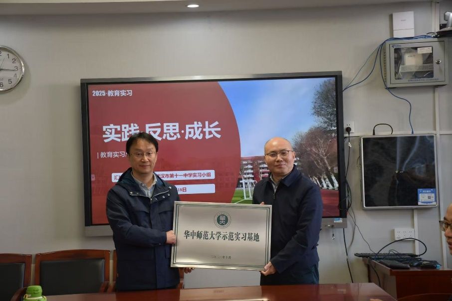 随后,原弘副院长代表华中师范大学向武汉市第十一中学授予第一批示范实习基地称号,并向武汉市第十一中学表达了其长期以来对学校实习工作大力支持的感谢。的建立标志着院校双方在“协同育人”的合作上达到了新的高度。