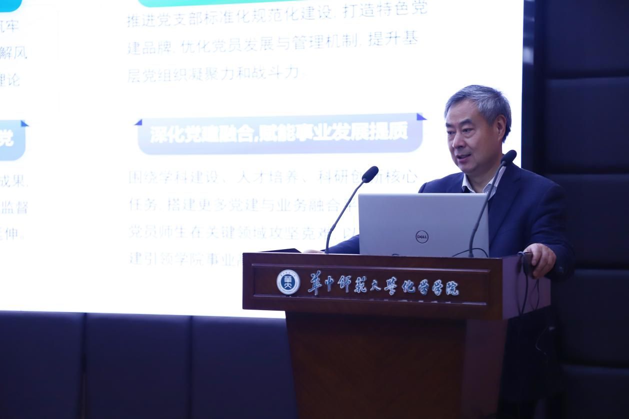 院长肖文精代表学院作年度工作报告,围绕党建引领、人才培养、师资队伍建设、科学研究、实验室安全等多个方面,全面总结上一阶段工作成果,并对新学期发展方向与任务作出系统阐述。