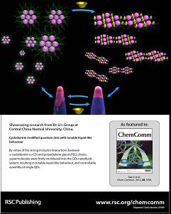 Commun. 2009, 3545; Anal. Bioanal. Chem. 2010, 397, 1437),就进一步实现零维半导体量子点可控的有序二维自组装,开发新颖的功能量子点材料方面取得了创新性的研究成果。结合环糊精优越的分子识别功能及材料的独特类流体性能,所获得量子点类流体材料在构建智能流体手性识别器件方面具有潜在的应用价值。