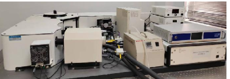 仪器功能:不同种类的物质有着不同的内部结构和发光性质,稳态/瞬态荧光光谱仪可以根据荧光光谱对不同种类的荧光物质进行定性及定量分析。本仪器因能实现多种功能性测试而被广泛应用于多个领域:(a)能够实现不同类型样品(包括液体,固体,薄膜以及粉末)的激发光谱、发射光谱(300~1600 nm)、同步扫描、动力学光谱、三维光谱的测试;(b)通过配备紫外、可见区及近红外多个波段的脉冲激光器和闪烁氙灯能够实现覆盖紫外至可见近红外波段的稳态/瞬态激发,能够分别进行荧光寿命、上转换荧光寿命(5 μs~100 ms, 300 nm~1600 nm)和磷光寿命(1 μs~10 s, 200 nm~1600 nm)测试;(c)利用大口径积分球置于样品仓内,通过直接光路测量绝对荧光量子产率(300 nm~1600 nm);(d)能够进行不同温区的变温荧光实验(77 K~500 K);
