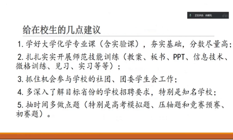 最后,佘爱民老师结合在目前在校大学生的实际情况,建议大家从学生阶段就要注意提升自己作为一名老师的能力,扎实掌握学科知识,这才是以后工作中的立身之本。
