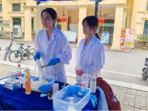 本次活动由2022级、2023级本科生共同合作,以趣味实验演示、化学知识游戏两种方式举行,活动采用集章制形式,依据印章数量参与抽奖,获得纪念品。在主持人的详细介绍下,大家纷纷加入形式多样的实验和游戏当中。