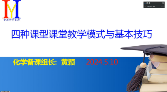 随后,黄颖老师讲解了讲评课和习题课的内容。他指出讲评课不是枯燥的一味讲题讲试卷,而是需要各个环节的准备和配合,包括课前精心准备、课中精彩呈现、课后精细落实三个环节,如此,才能高效达到考试目的和落实素养。而对于习题课,黄颖老师重点指出了让学生来说题的重要性和实用性,并现身说法,讲述了自己是如何锻炼学生的讲题说题能力的。