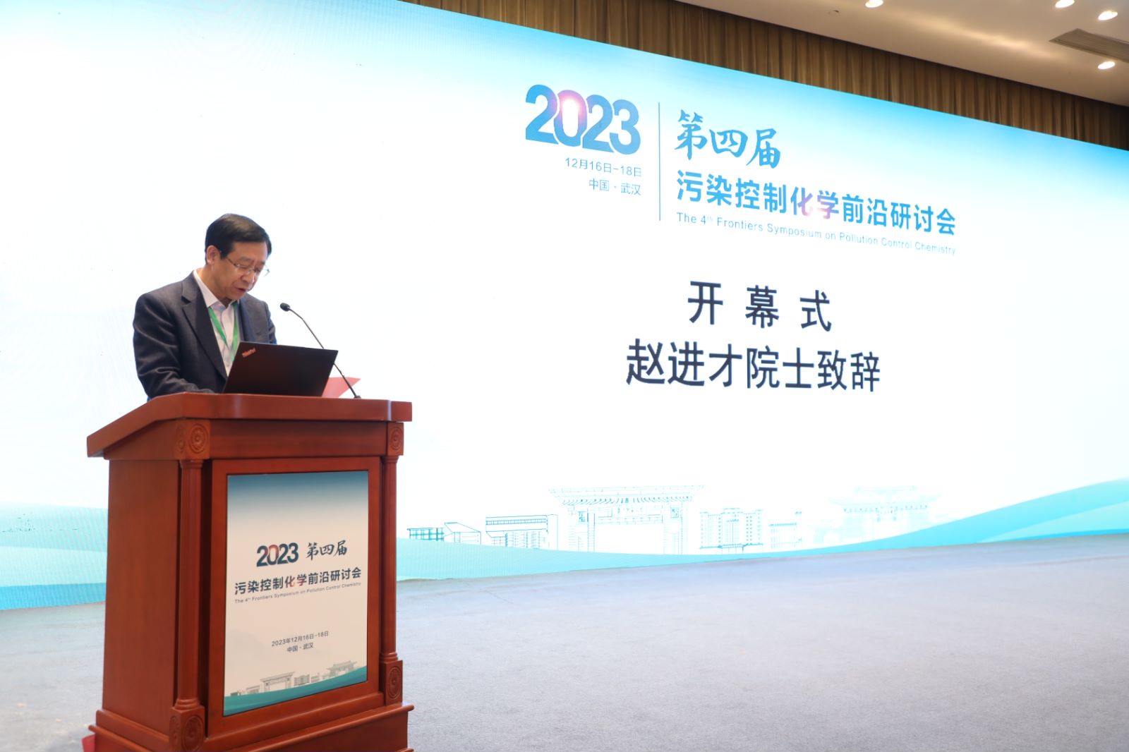 赵进才代表组委会热烈欢迎与会专家学者的莅临,简要回顾历届污染控制化学前沿研讨会情况,指出污染控制化学从基础研究到产业化应用成果显著,在高端人才培养、完成国家重大任务等方面作出了积极贡献,他希望专家学者通过本次会议深入探讨交流,相互支持,相互促进,共同为我国环境科学的发展贡献智慧。