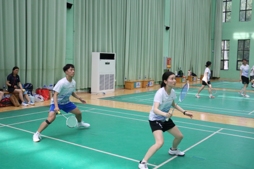 比赛开始前,双方都积极备战,不断舒展身体,挥动手上的球拍,。随着裁判口令响起,比赛正式拉开帷幕。静寂的空气中只听得见裁判的号令声以及参赛选手精准击球发出的清脆砰击声。无论是老师还是学生皆屏息凝神,全神贯注地盯着对手的每一个动作,以此调整自己的攻防节奏。选手们将球前后场轮番拉扯,打得有来有回,白色羽毛球飞舞于两个半场之间,只留下一道道虚影,师生双方紧咬分数,比赛一度陷入白热化阶段。