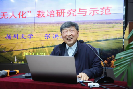 通讯员 李瑶 冯祝 崔光睿3月21日下午,中国工程院院士、农业农村部水稻专家指导组副组长、扬州大学张洪程教授作客我校首期“院士大讲堂”,在理科实验楼L823报告厅为我校师生带来“水稻‘无人化’栽培研究与示范”专题讲座。湖北省科学技术厅副厅长吴骏等领导出席,我校相关职能部门领导和我校师生到场聆听。本期大讲堂由绿色农药全国重点实验室副主任、化学学院杨光富教授主持。