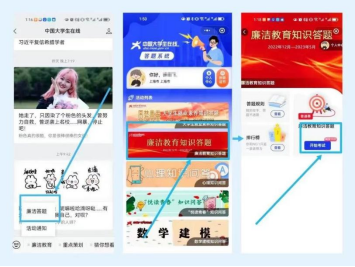 组织动员师生员工参加廉洁知识网络问答。教育部将综合答题正确率、完成时间等因素对全国前100名优秀学员颁发电子学习认证证书。