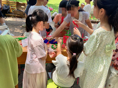 图4:小朋友们在用天然环保玉米淀粉-魔法玉米棒DIY玩具