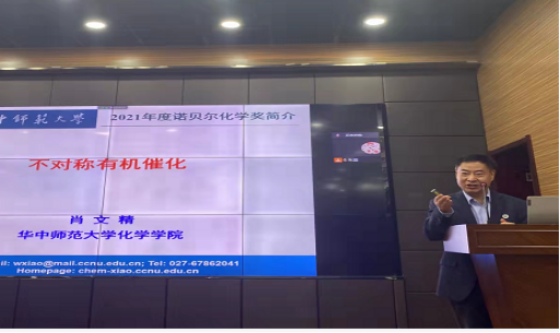 报告伊始,肖文精教授先给师生讲授了2021年诺贝尔化学奖的获奖时间及理由。2021年诺贝尔化学奖于10月6日在瑞典揭晓,德国科学家Benjamin List和美国科学家David W.C. MacMillan因发展了一种精确的分子构建全新工具—有机催化—而被授予2021年诺贝尔化学奖,获奖理由为“在不对称有机催化方面的发展(for the development of asymmetric organocatalysis)”。这种新工具彻底改变了分子的结构,对药物研发等产业产生了巨大的影响,并使化学变得更加环保,造福人类。