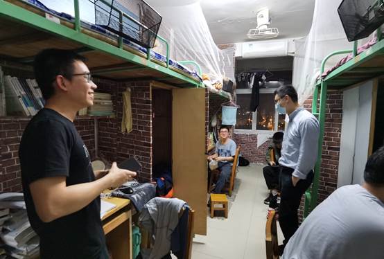 4月21日,院党委副书记陈德均、辅导员梁晋华、段海菁共同走访研究生寝室,与学生进行了亲切的交流,并积极联系研究生导师将相关情况进行了沟通。