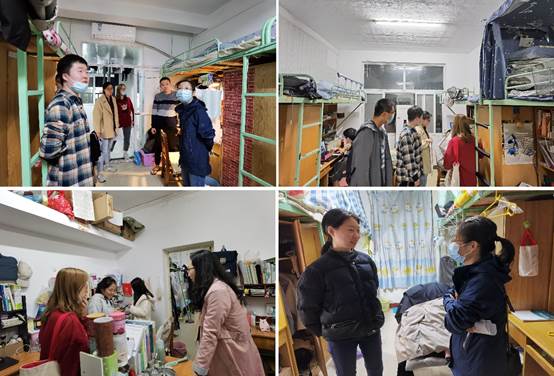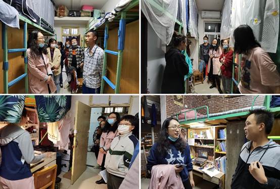 在大一学生寝室,学院领导及老师与新生们交流互动,“大学里面没有了老师和家长的监督,同学们更要养成良好的习惯。”徐芬副书记和新生辅导员建议同学们要保持积极的学习状态,做好自己未来四年的人生规划,并朝着这个方向不懈努力。在高年级寝室,老师们重点对寝室卫生、安全情况进行检查,发现学院学生的寝室卫生状况在定期查课查寝活动中得到提升,情况整体良好,物品摆放整齐,无违纪行为,希望同学们可以继续保持,打造积极、健康的寝室文化。到达毕业年级寝室时,由于大部分师范生均在外实习,仅有少数非师范生在寝学习,老师们关切询问了同学们就业打算和考研准备情况,并仔细查看了毕业生寝室情况,希望同学们向优秀寝室看齐,营造良好的生活环境。
