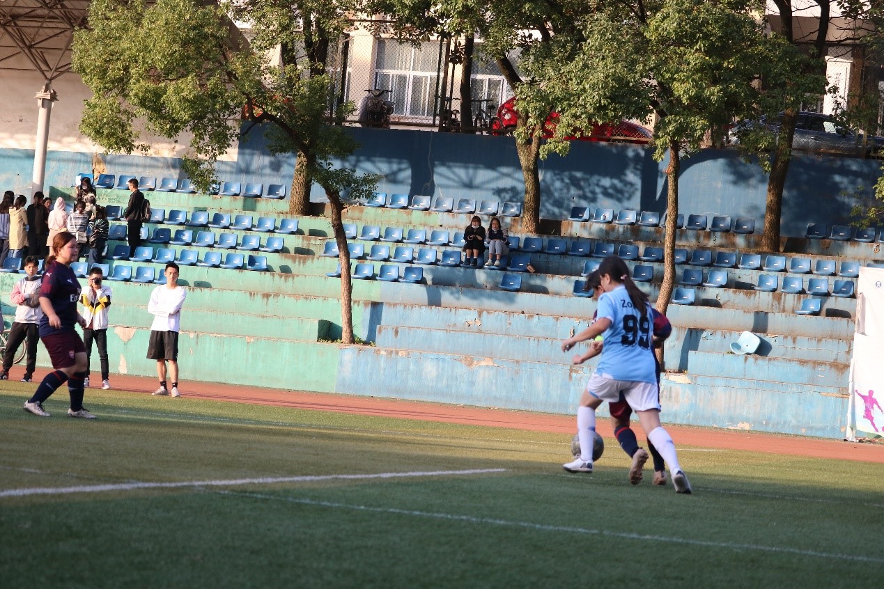 易边再战,战况愈加焦灼。第25分钟,99号祖丽皮亚带球连过两人,随后在禁区线上倒地。裁判判罚了任意球,由19号乌日恒主罚。球越过人墙之后飞向球门,门将险些脱手,但最后还是将球抱住,化院无缘进球。第30分钟,11号陈蒙蒙禁区内射门击中防守队员手臂,裁判判罚给化院一粒珍贵的点球!奈何运气不佳,19号乌日恒的点球直飞球门左下角被门将扑出,99号祖丽皮亚跟上的补射亦被门将没收,化院女足又一次错失进球良机,场边观众无不惋惜。但化院女足的姑娘们仍未放弃,反而愈战愈勇,不断尝试在对方半场寻找突破的机会。但随着化院女足的进攻变得更加猛烈,计科女足的守势也越发严密,多次精彩的配合都未能扳回一城。最后,裁判长哨三声,华为杯女足决赛正式落幕,化院女足以0:1的负于计科女足,获得本次比赛的亚军。