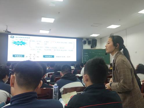 教育见习方面,化学学院2017级实习生吴康玉首先向高二学生开始了她的授课内容——溴乙烷。吴康玉由受伤后经常使用的气雾剂引出溴乙烷的讲授,并在讲述其物理、化学性质时进行了演示实验、实验探究等。接着化学学院校友、武汉六中青年教师袁爽面向高二学生讲述了“乙醇”一节公开课。袁爽老师对乙醇的醚式结构和醇式结构进行了科学探究,并由酒驾时如何检验乙醇含量引出乙醇的化学性质,并对乙醇的化学性质用实验进行了验证。