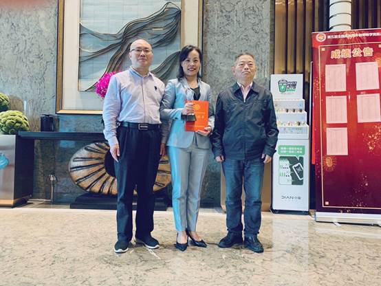 (校工会主席周东明、化学学院教授原弘与佘能芳老师国赛合影)