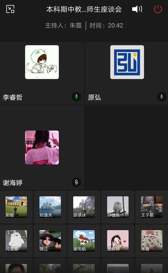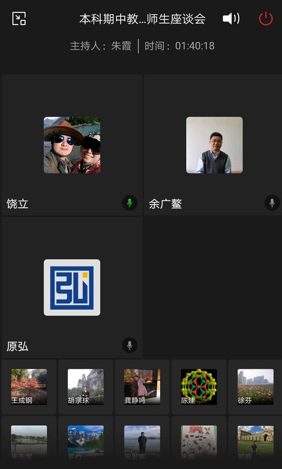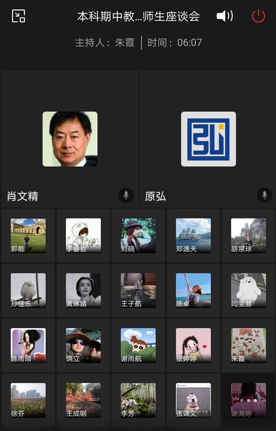 通讯员:朱霞 为积极响应国家“停课不停教不停学”的号召,进一步贯彻落实学校期中教学质量检查的精神,充分了解和掌握我院前半学期的本科线上教学情况,探讨教师授课过程中遇到的问题及了解学生的学习效果、解决学生的切身问题,我院于5月26日13:00在企业微信平台召开线上师生座谈会。会议由学院教学委员会主任原弘主持,院长肖文精、党委副书记徐芬、学校督导胡宗球、教师代表和各年级学生代表等出席会议。