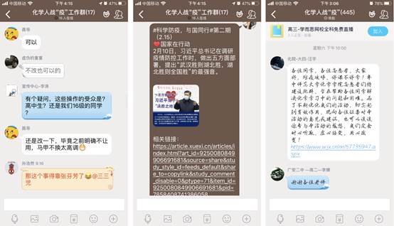 “化学人战疫”志愿者团队每日分时段安排固定的志愿者进行盯守值班,学生在群内提出学业困惑时,值班志愿者与其他非值班志愿者可共同回答,保证学生提出的问题随时能得到及时有效的解答。同时,志愿者团队特别安排专人定期发布与防疫有关的科学知识,在知识辅导的过程中发挥化学专业特长进行防疫知识的科普宣传。志愿者们也认真调查收集辅导对象的意见反馈,进一步优化“化学人战疫”群内辅导机制。