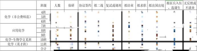 学院成立就业工作专班,党委书记、院长担任组长,副书记、教学负责人、辅导员、班主任、班导师为组员,统筹协调学业毕业就业促进工作。全面搜集掌握就业现状。自2月23日起,学院主动收集考研学生笔试成绩,同时提供相关资源和复试指导;结合大四上学期完成的毕业生就业意向统计,对求职、公考、二战、就业意向不明等各类学生信息进行分类整理;面向全体学生和家长中分别发布调研《化学学院2020届毕业生调查问卷》和《化学学院2020届毕业生家长调查问卷》;发布问卷调研《预计无法按时取得毕业生、学位证情况填报》《化学学院2020届本科生毕业相关问题解答及信息公告》等;针对存在专业课程学习困难、英语四级通过困难、教师资格证通过困难、求职简历笔试面试困难等学生开展分类指导;发布调研《化学学院2020届本科生修课程成绩丢失情况调查》等。进一步完善就业制度,修订完善了《化学学院毕业年级学生办理解约及重新应约管理办法》,积极引导学生诚信签约。
